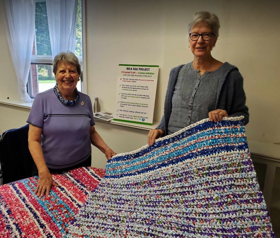Would you like to learn how to crochet? Already know how and want to use your skills for a good cause? Need volunteer hours? Take part in the Milk Bag Mat Project! Learn how to easily crochet unwanted milk bags into much-needed plastic mats for those less fortunate. It takes 250 bags to make a single mat, and Hannelore Klimek (pictured below right) has made over 460 mats and counting, which have been shipped as far away as Haiti, Malawi and Honduras and used in homes, schools and hospitals. Learn how to divert unwanted plastic from the landfill and create something beautiful and needed! Contact Hannelore at 905-387-7496 for more information.